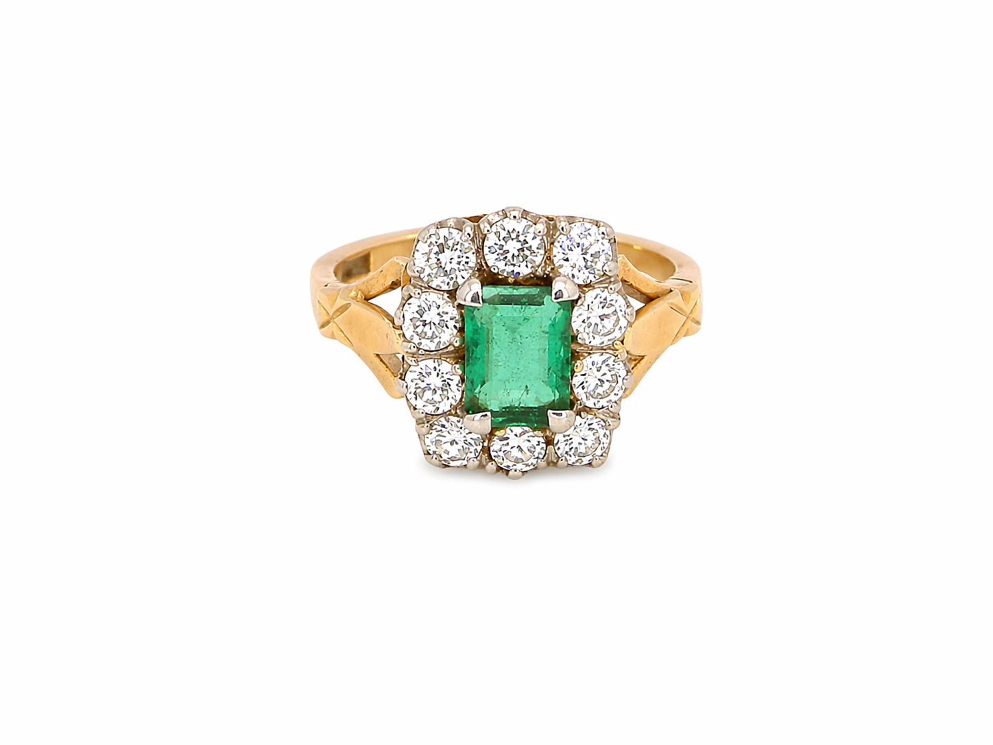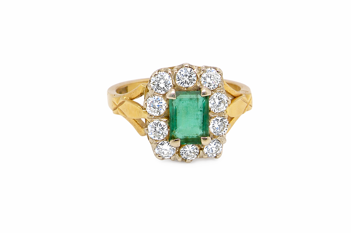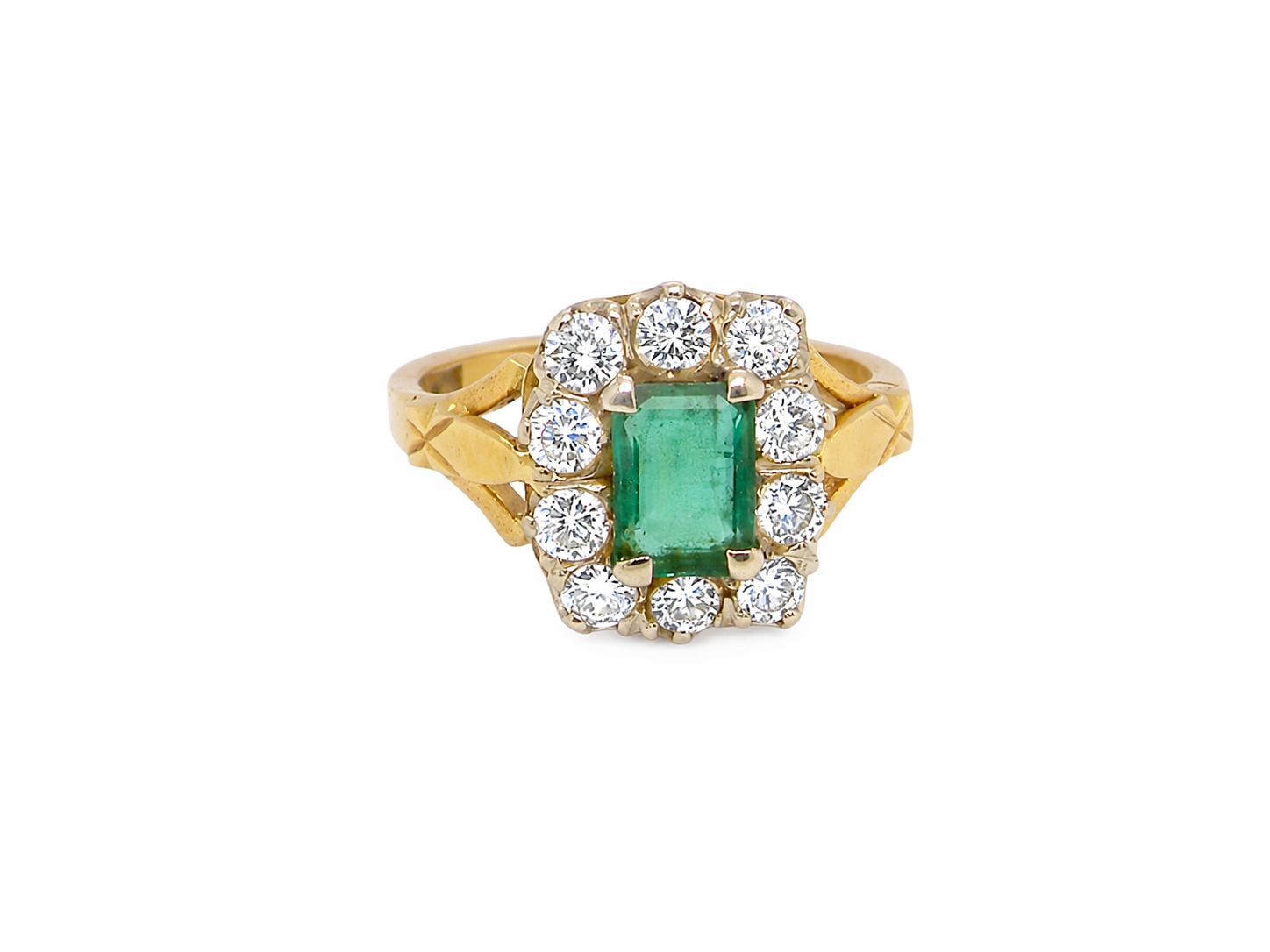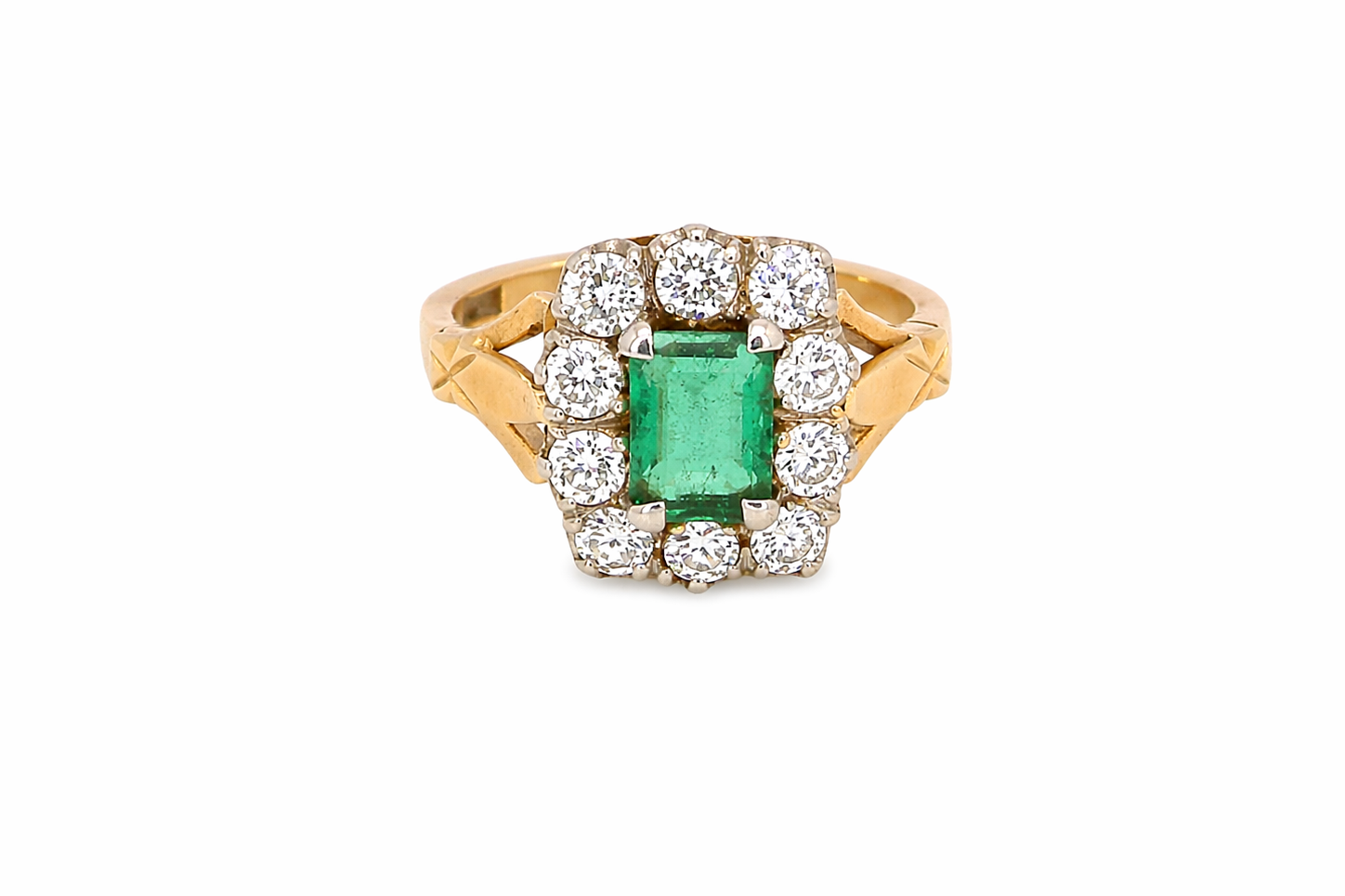 Crafted with a platinum head and 18 carat gold shank, this piece is hallmarked London 1977 and remains in excellent condition, with crisp detailing throughout. A substantial and beautifully proportioned ring, perfect as a statement piece or a unique vintage engagement ring.