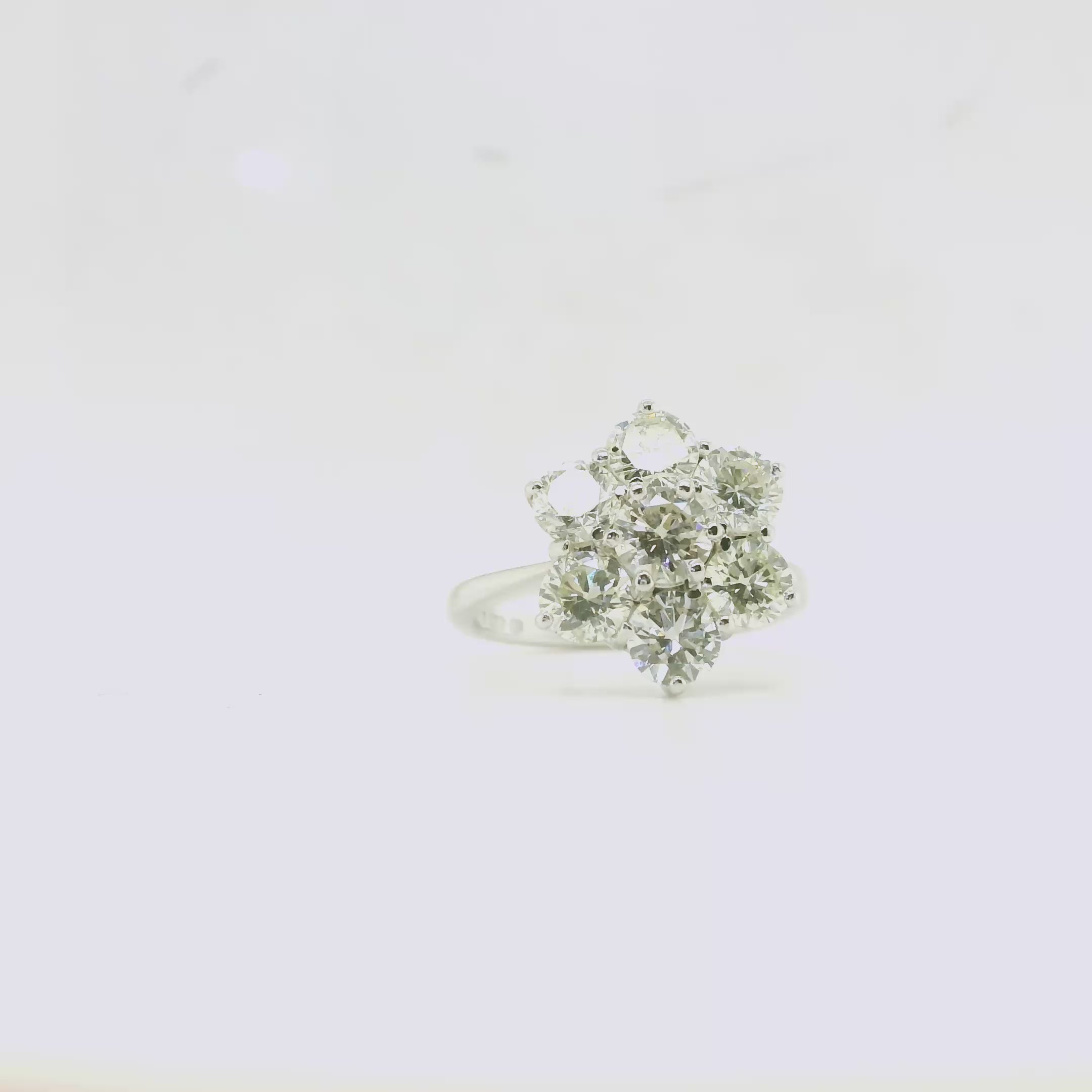 An 18 carat white gold cluster ring and featuring seven exceptional brilliant cut white diamonds.