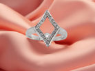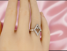 A marquise shaped ring. The outer border is set with nineteen small white diamonds, each 1mm (0.20 carats estimated)