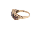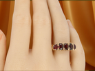 Based on the designs of the late 19th century this five stone ring, set with garnets is a reproduction from that era.