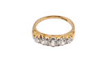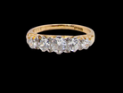 A Victorian ring containing five graduating old cut diamonds. Centre 5mm (0.40 carats) each side a 4mm stone (0.20 carats) and at each end a 3mm diamond. Total diamond content estimated at one carat.