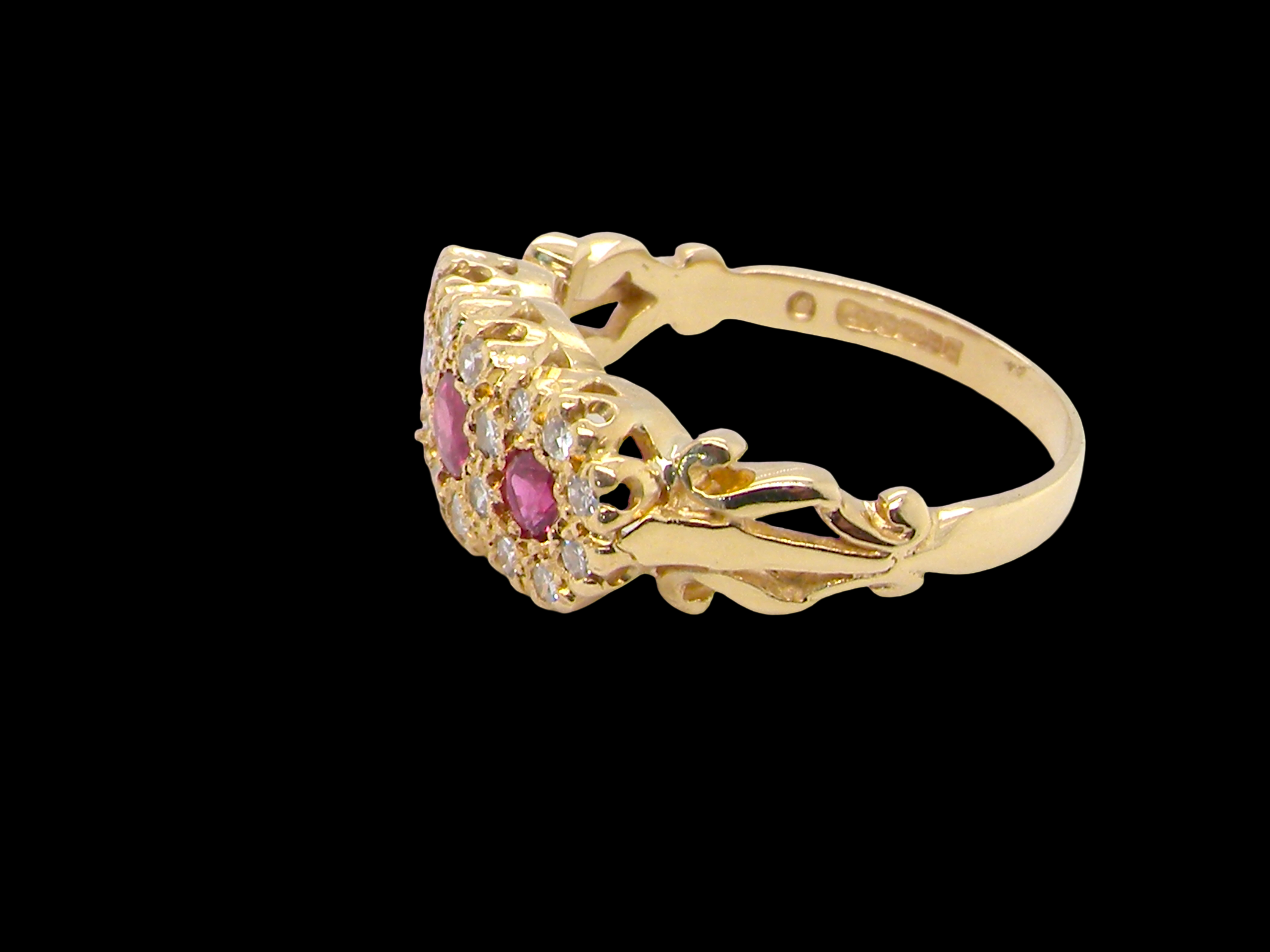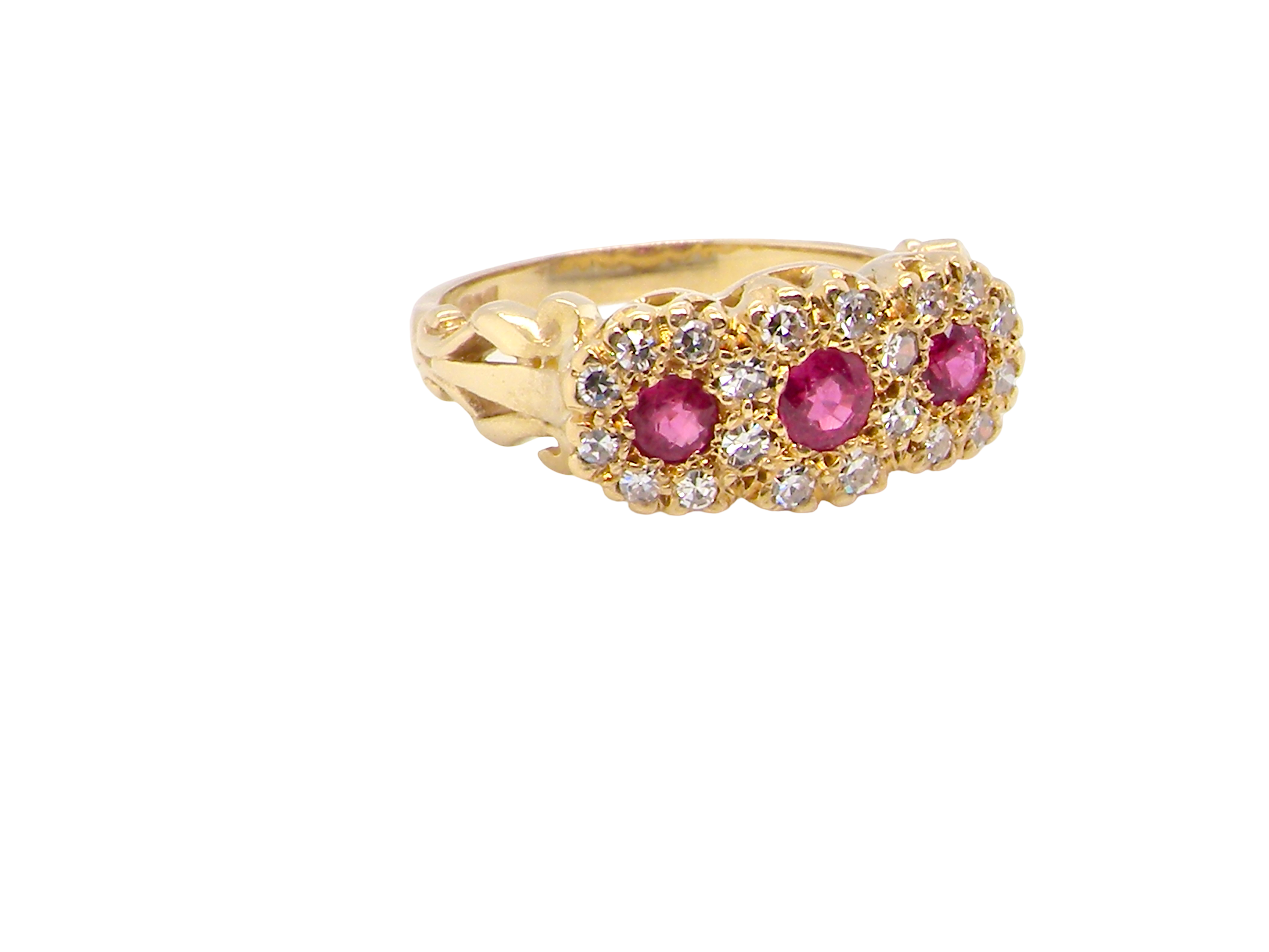 A vintage Ruby and Diamond three cluster ring