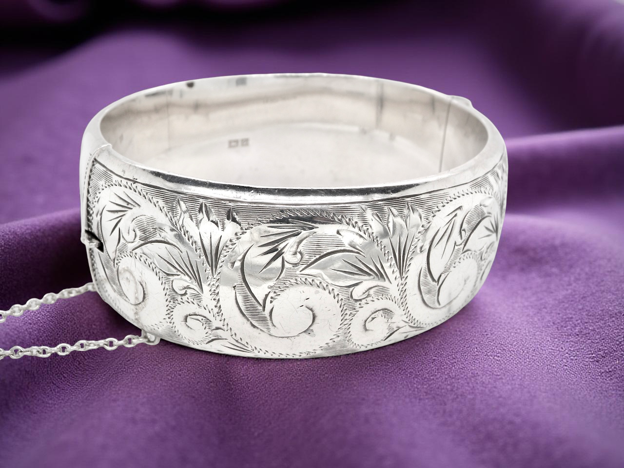 An extra wide sterling silver bangle. 25mm width, D shape profile.
