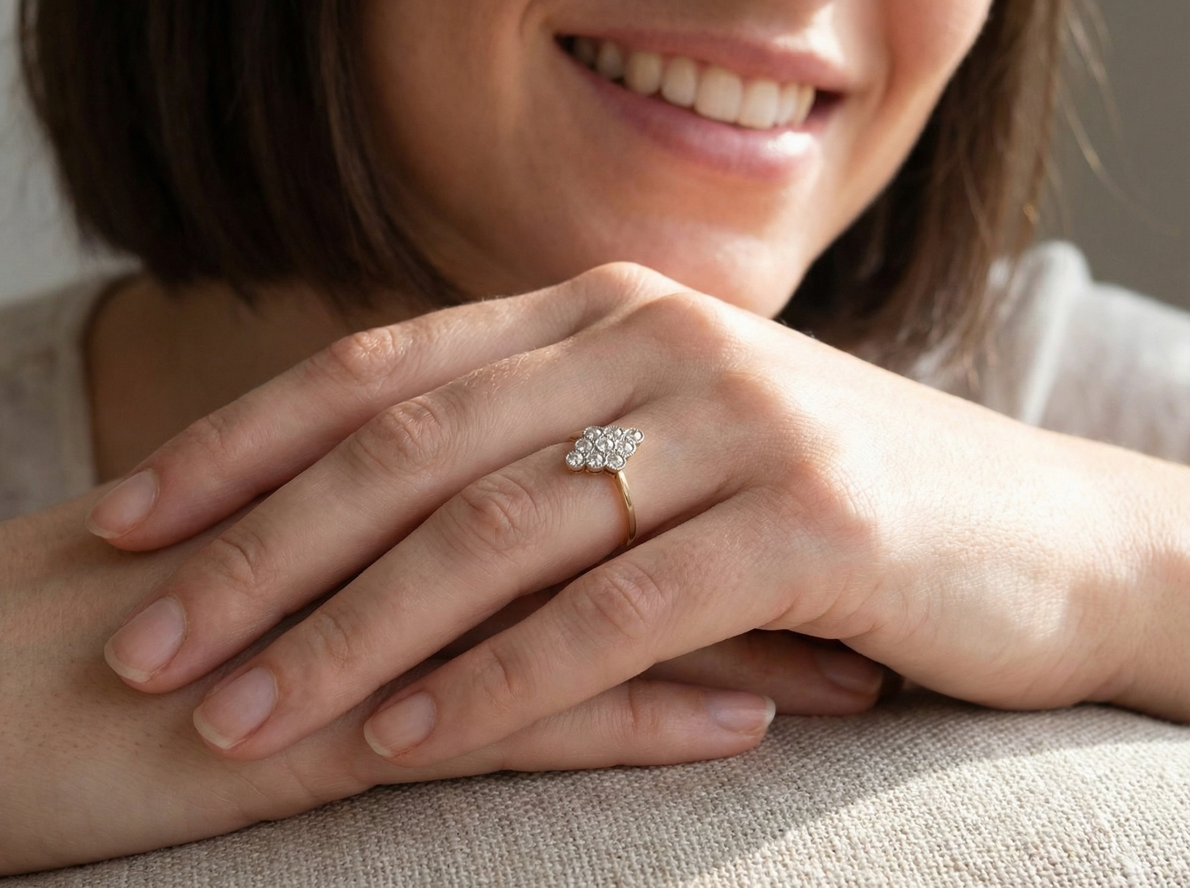 An antique diamond marquise cluster ring