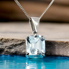An impressive pendant featuring an aquamarine, simply presented to accentuate its sky blue beauty.