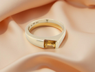 A 14 carat gold* dress ring containing a rectangular citrine gemstone, this 6x4mm.