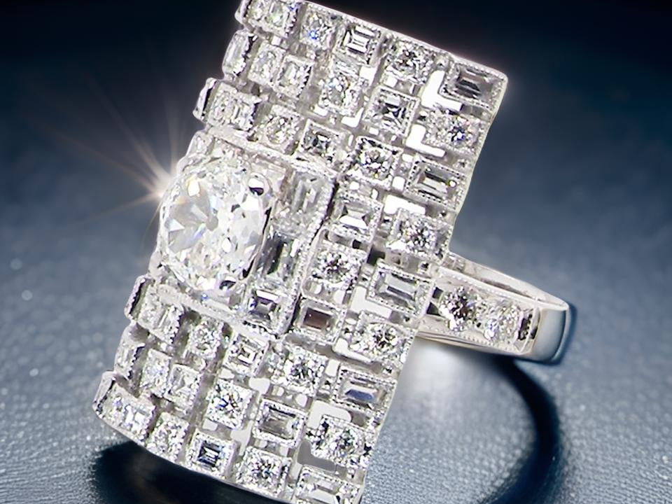 Browse our ever changing collection of Art Deco rings. It is very unique in its design and is quite distinguishable from the other era's (1920-1935) Our stock is always changing so please call back if you do not find what you are looking for today. Free UK Postage and Returns on all items including a beautiful gift box and appraisal included with every purchase. Looking for more designs? Explore our full range of Vintage & antique rings
