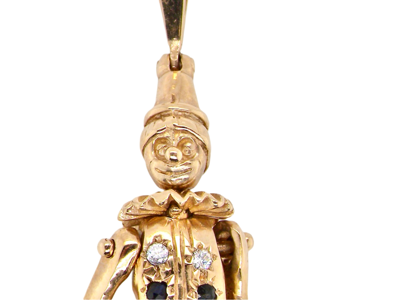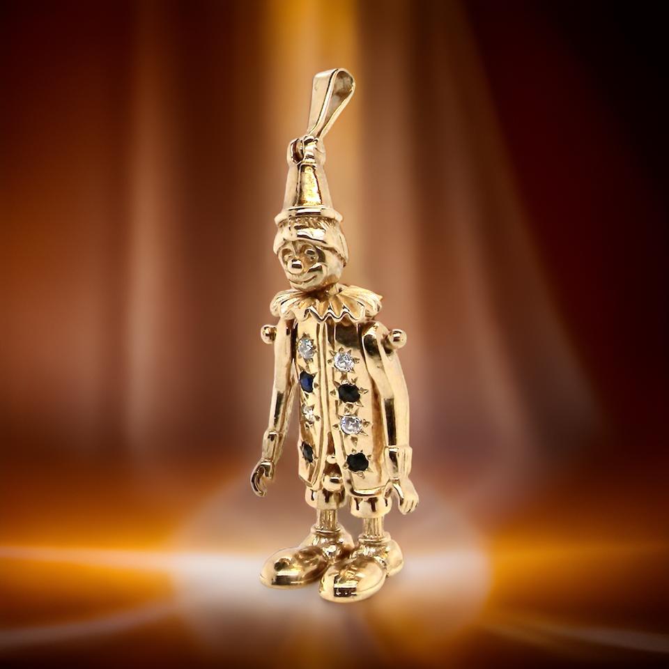 A large and impressive articulated clown pendant. Measures 52mm length, width 20mm, weight 11.3grams.