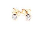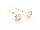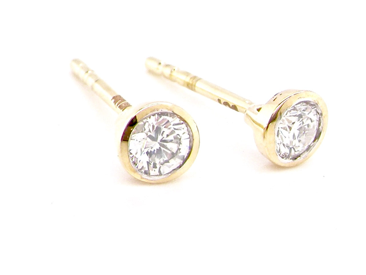 A pair of new simple diamond stud earrings. Each containing a brilliant cut white diamond, 0.15 carats, colour G-h, clarity Si. 9 carat yellow gold.