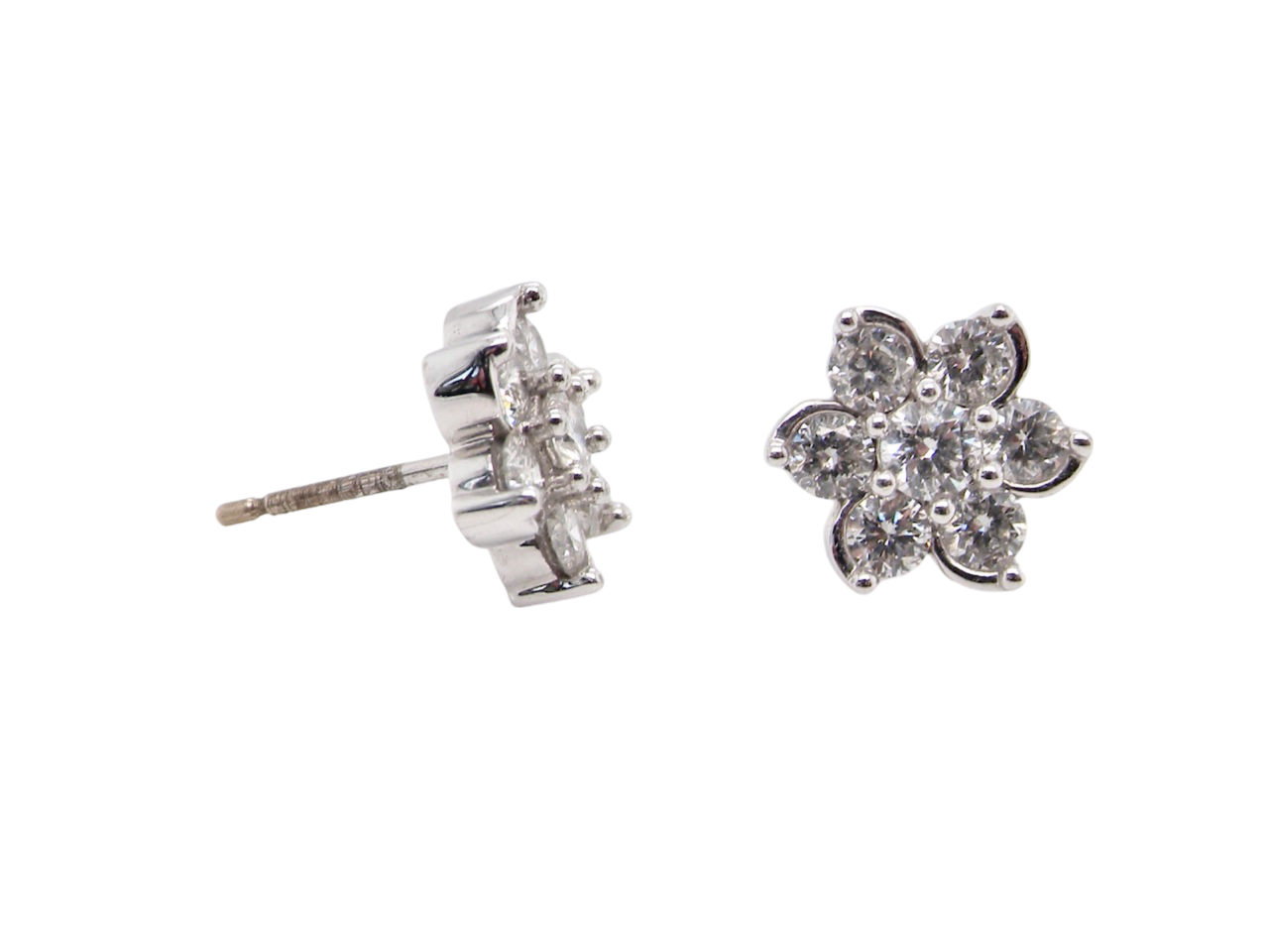 A pair of cluster earrings, each set with seven brilliant cut white diamonds. Each 2.7mm to a total of 0.50 carats. Colour G-h, clarity Si.