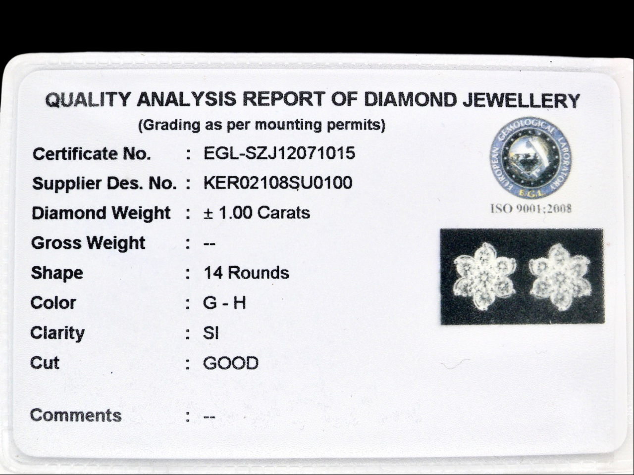 Supplied with a credit card style certificate.