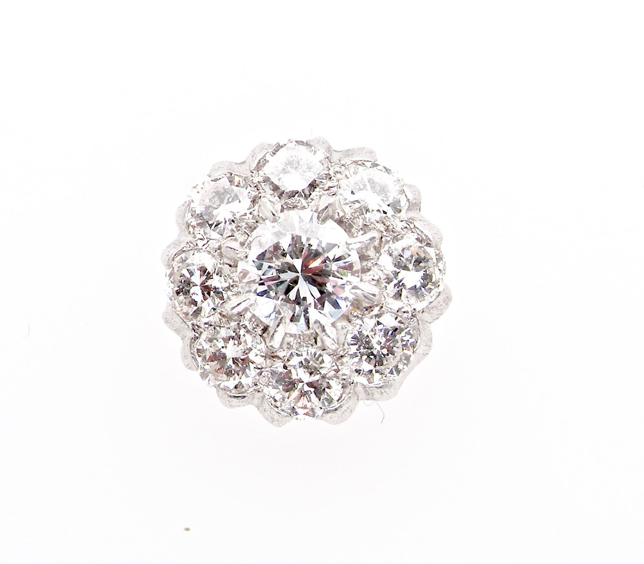 A fine pair of diamond cluster earrings. Each earring is set with a half carat centre stone surrounded by eight x 0.05 carat diamonds, each earring 0.90 carats.