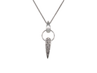 Attached to an open ring with another pear shape to the top which is the bale that accepts the foxtail link neck chain.