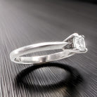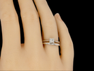 A single stone solitaire ring containing a Canadian emerald cut white diamond. Measures 4.36x4.30x3.09mm, 0.51 carats.