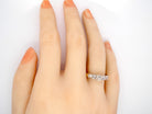 A five stone ring containing brilliant cut white diamonds. Centre stone 4.3mm, each side a 3.3mm stone, at each end a 2.9mm stone. Total carat weight is one carat, colour I-j, clarity VS2-Si.