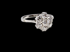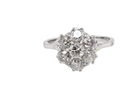 A vintage cluster ring from the early part of the 20th century, probably 1930s. Principal diamond measures 4mm (0.25 carats) surrounded by six smaller diamonds, 3.4mm each, and a total estimated weight of 1.15 carats.
