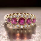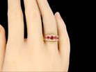The rubies are complimented by a row of old cut diamonds to the top and bottom, in total fourteen ranging from 1.4-1.7mm, total carat total estimated at 0.30 carats.