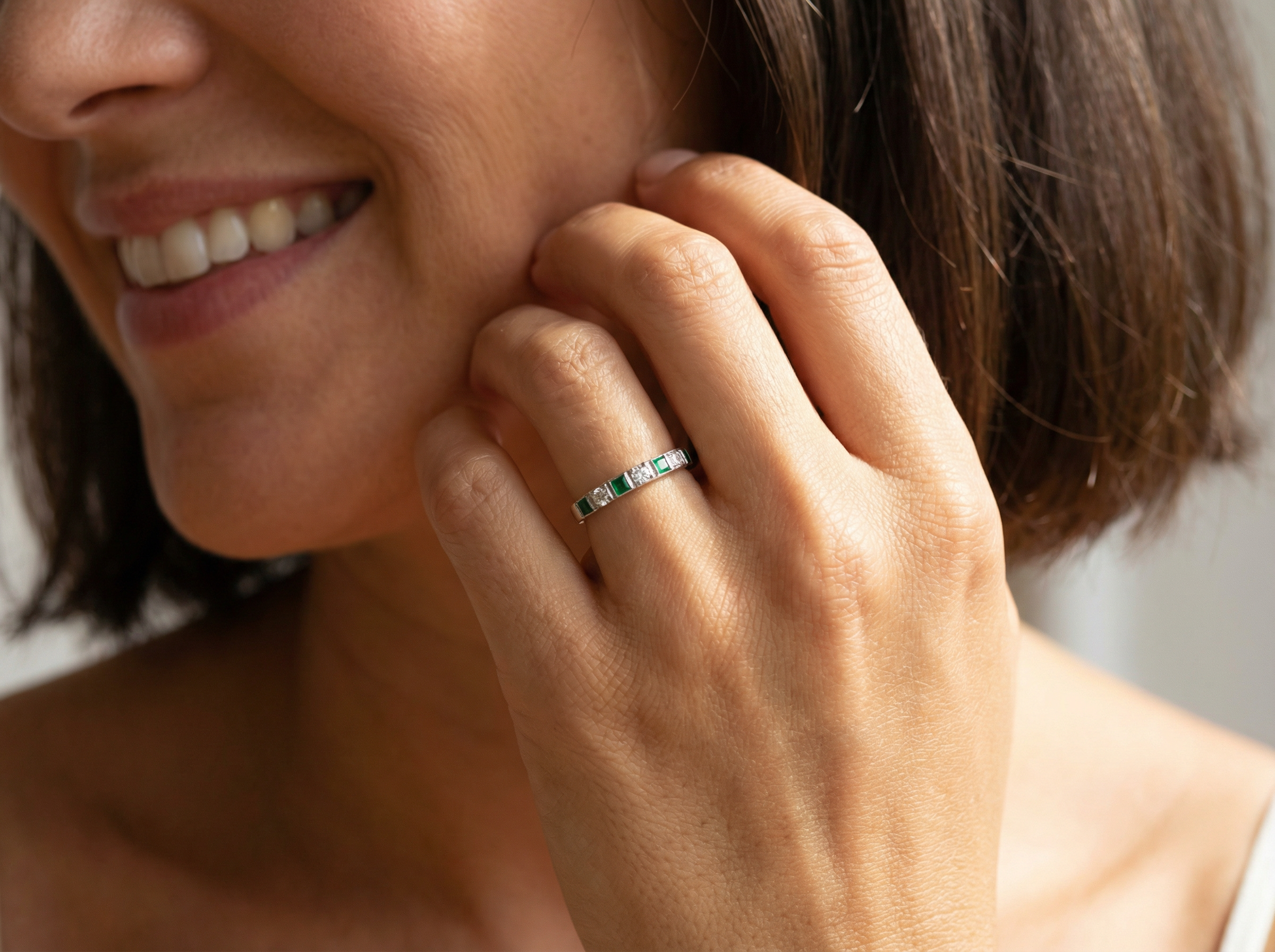 Explore our collection of Vintage Emerald and Diamond Eternity Rings, featuring vintage pieces that range from the modern period of the 1960s onwards. These rings are carefully curated to offer a blend of classic and contemporary styles, making them perfect for any occasion. FREE UK postage and quibble free returns. Looking for more styles? Browse our complete Vintage & Antique Jewellery collection featuring timeless rings and heirloom pieces.