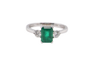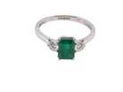 A NEW three stone Emerald and Diamond ring