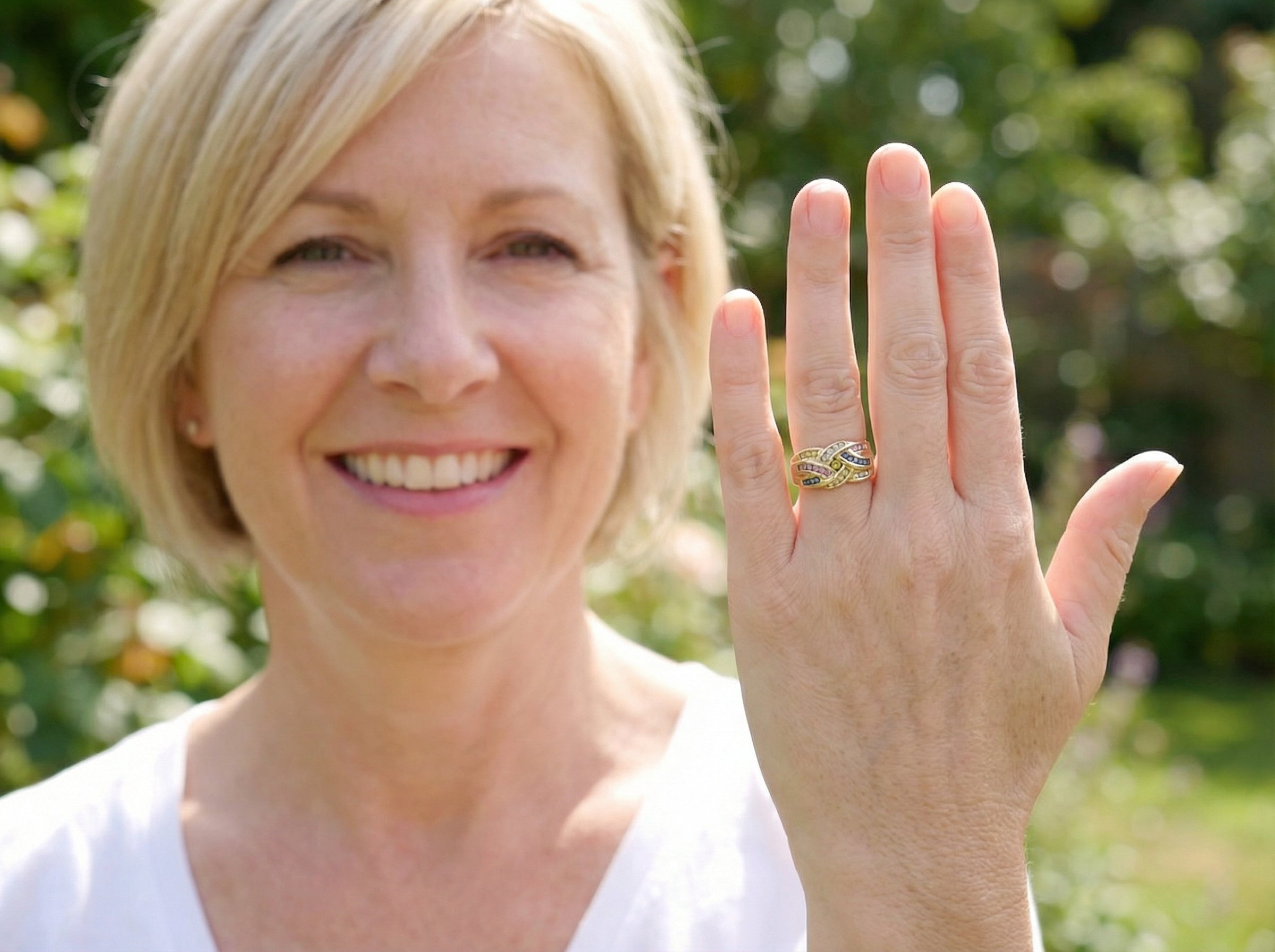 ❤︎ A 9 carat gold multi gemstone dress ring