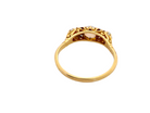 Each side of the centre stone two old cut white diamonds 2.4mm each (total estimated at 0.20 carats). Hallmarks for London, no date letter, probably early 20th century. Weight 4.3grams.