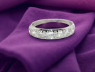 A fine 18 carat white gold* half hoop eternity ring. Set with seven brilliant cut white diamonds.