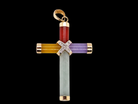 A lovely cross pendant, each section a different shade of jade, traditional pale green, cornelian orange, lavender and honey.