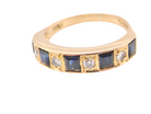 A fine half hoop eternity ring in 18 carat yellow gold, set with five square-cut inky black-blue sapphires (approx. 3.5 x 3.5 mm, ~0.25ct each).