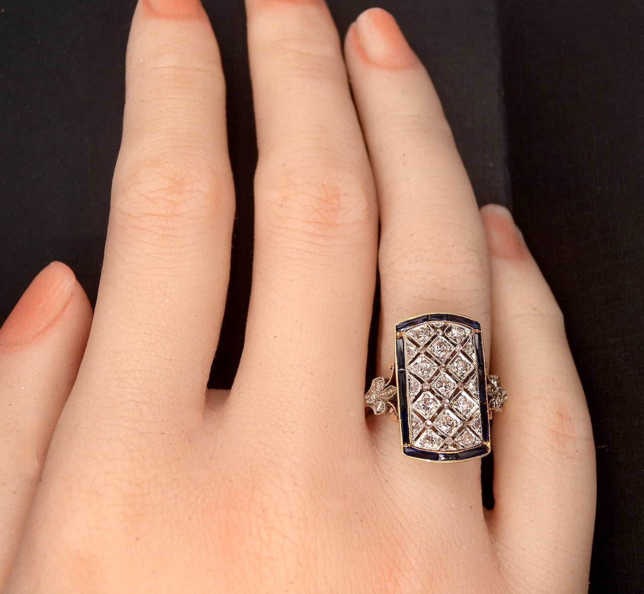 An Art Deco sapphire and diamond plaque design ring