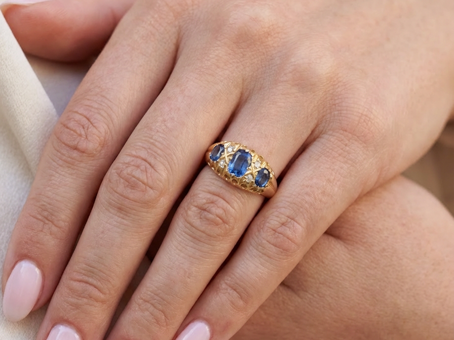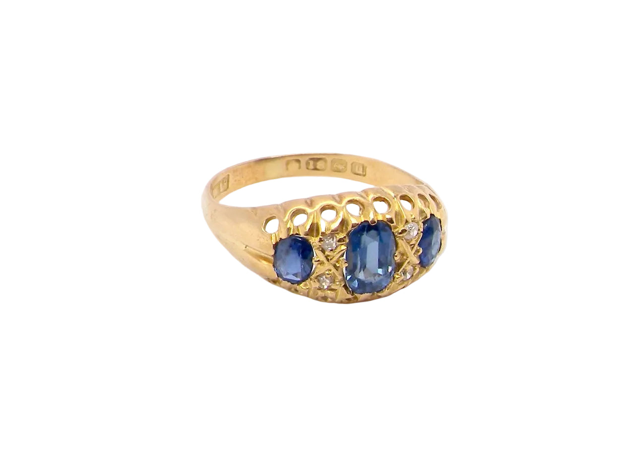 Celebrate classic elegance with our collection of sapphire and diamond three stone rings. These vintage and antique treasures feature dazzling blue sapphires paired with sparkling diamonds, beautifully set in timeless designs. Perfect for anniversaries, special occasions, or meaningful gifts, each ring symbolises past, present, and future. Enjoy free UK delivery, hassle-free returns, with every order from Vintage Tom