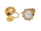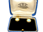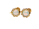 A fine pair of opal earrings. Diameter 8mm, good play of colour on the stone. Pierced pie crust decoration around the outside, total diameter 10mm.
