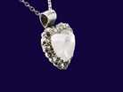 A very pretty Victorian pendant. The centre stone a heart shaped moonstone 10x10mm and this is complimented by an outer border of old rose cut diamonds, each 1.8mm.