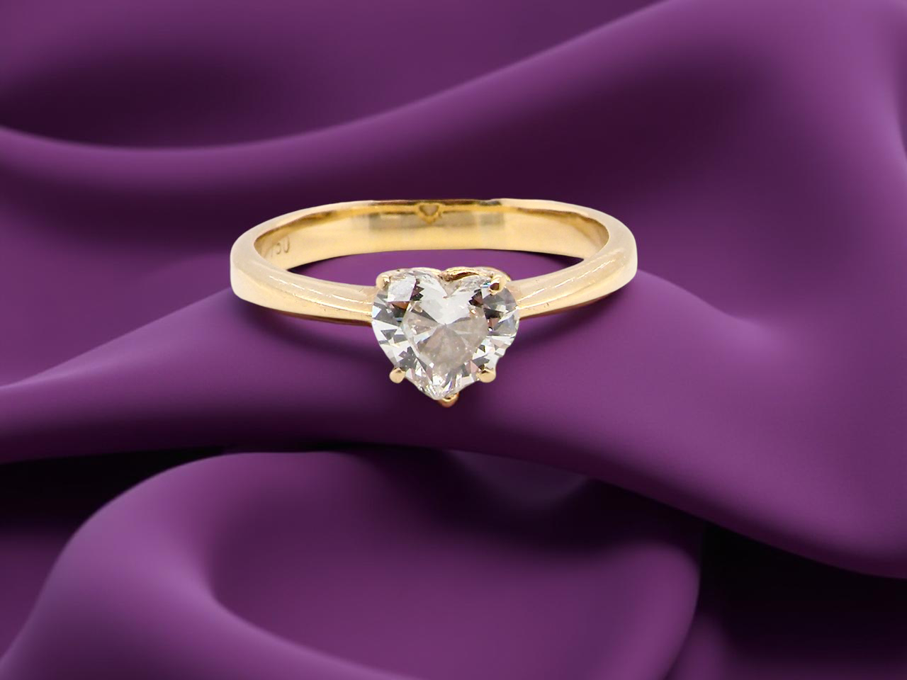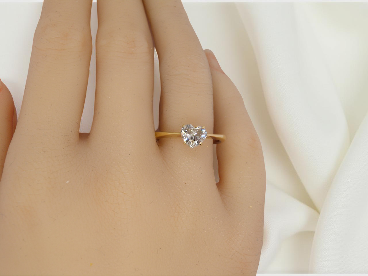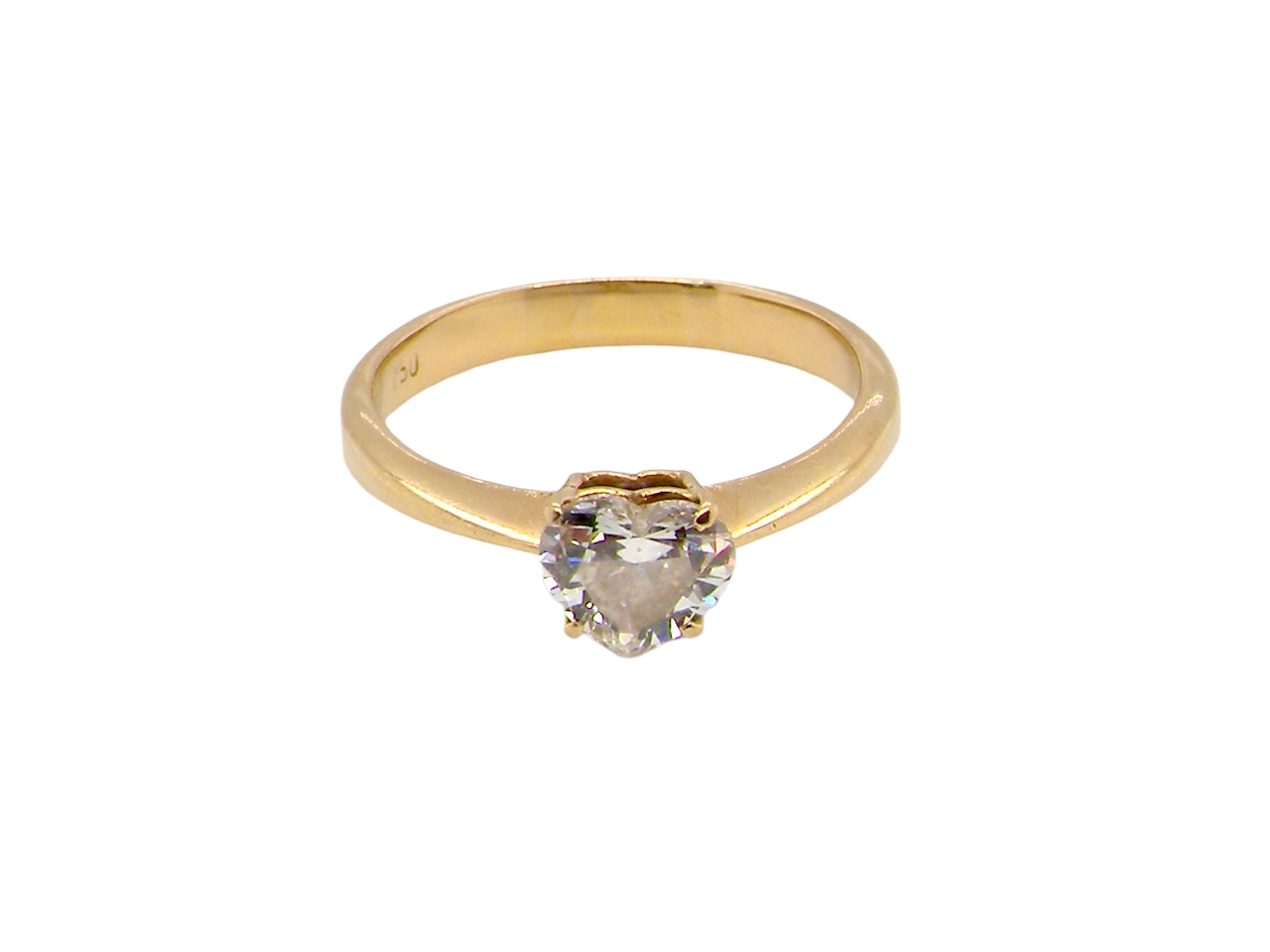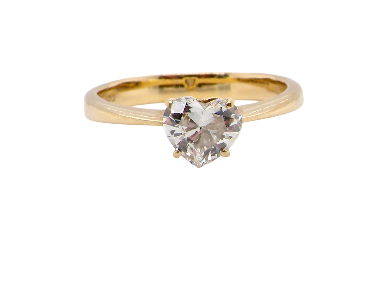 A truly gorgeous solitaire ring, set with a romantic heart-shaped diamond. Elegantly claw-set to maximise brilliance, the diamond measures approximately 7 x 6mm, with an estimated weight of one carat. The diamond is assessed as Colour H–J and Clarity VS–SI, offering beautiful sparkle and presence.