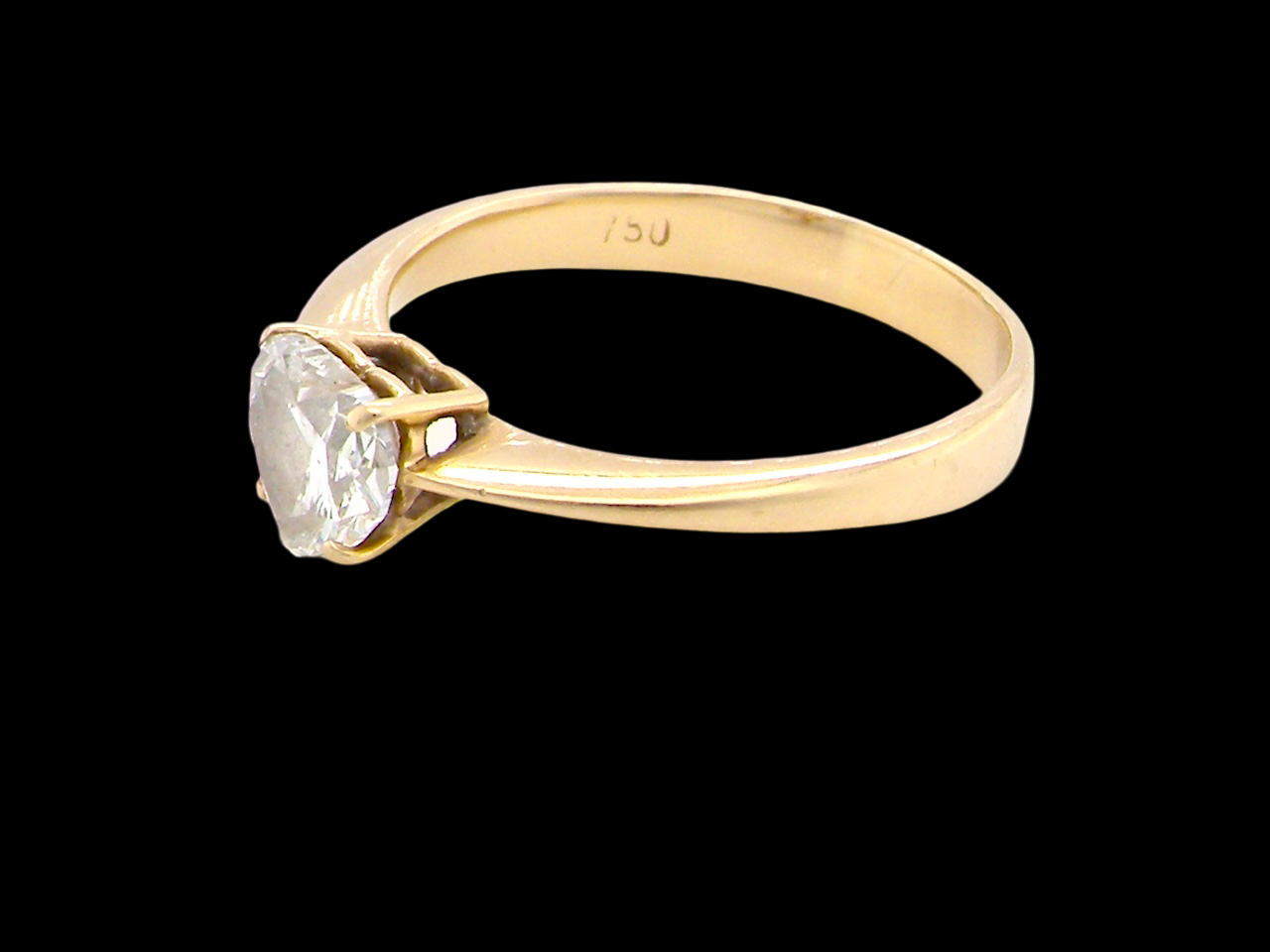 The classic gold band is stamped 750 and tests as solid 18 carat gold. As the ring was originally purchased overseas, it carries no UK hallmarks.