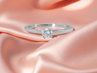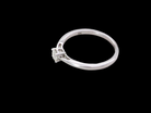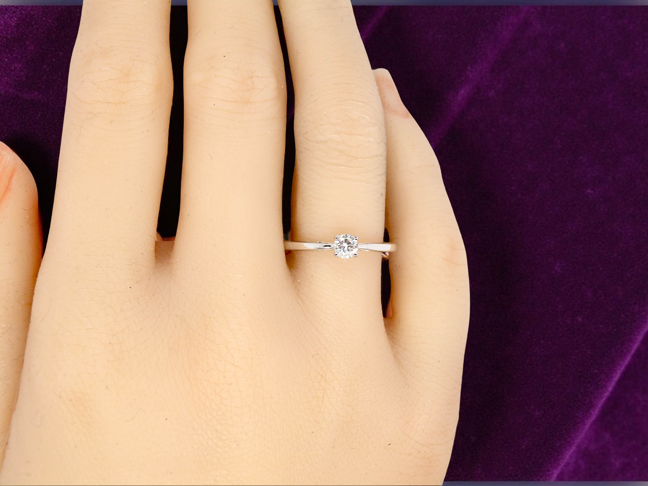 A classic solitaire ring containing a single brilliant cut white diamond.