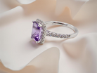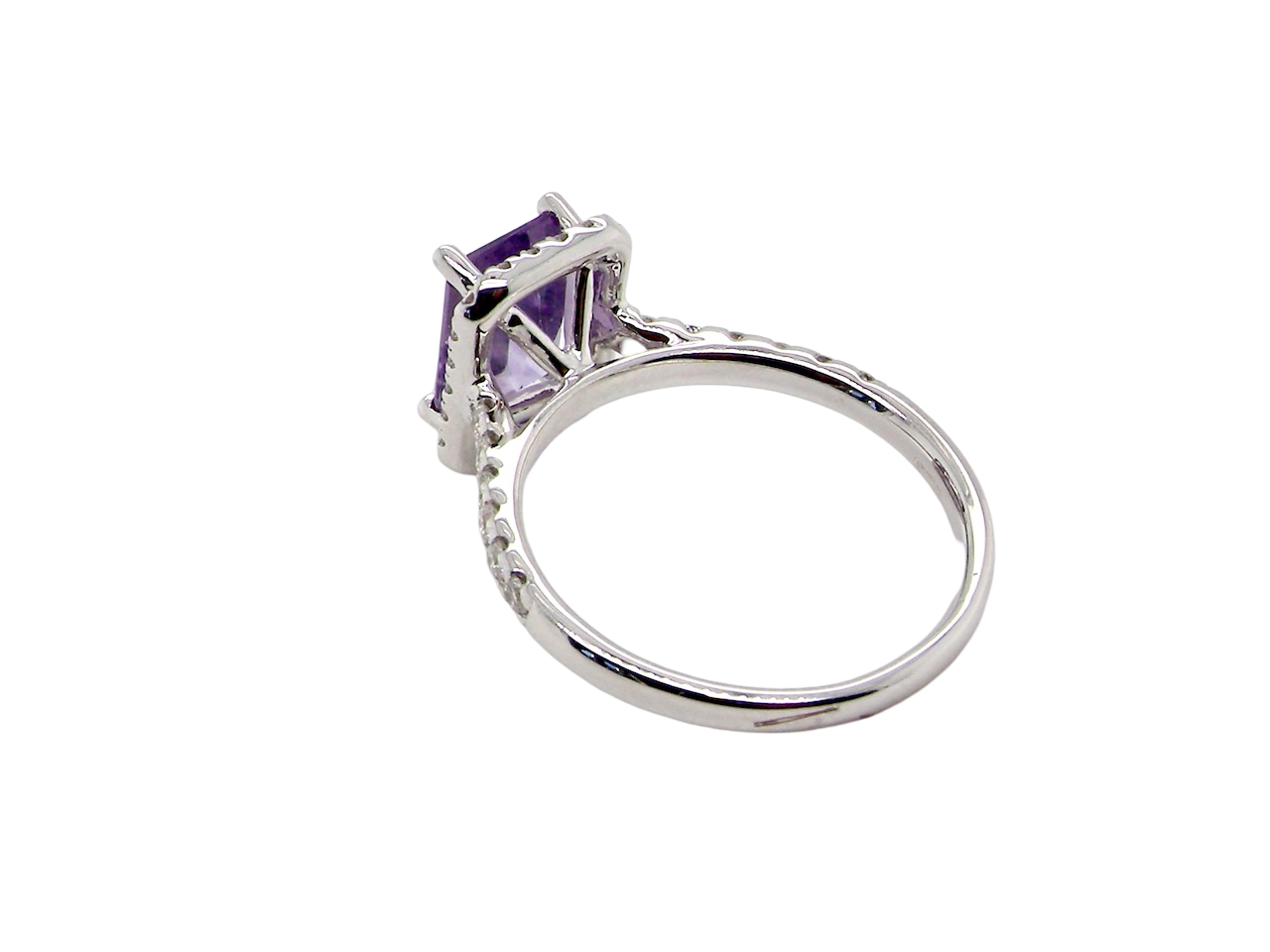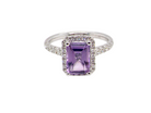 A 9 carat white gold cluster ring that features to the centre a 9.6x6.5mm amethyst (est 1.8 carats) .