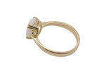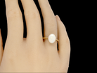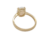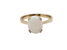 A NEW 9 carat gold dress ring containing a single oval opal 10x8mm with some good play of included colour.