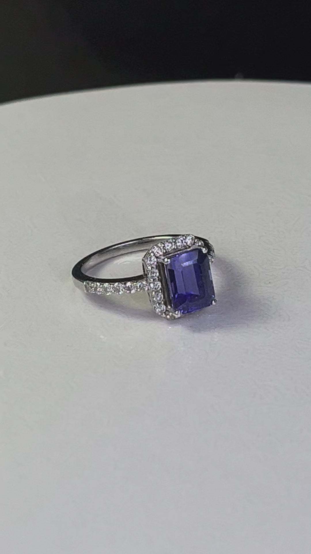 An impressive cluster ring featuring a 4A quality Tanzanite as its centre stone. The gemstone measures 8.5 x 6.5mm(estimated 1.00 carat) and displays a beautiful luminous purple-blue hue with a deep, reflective glow.