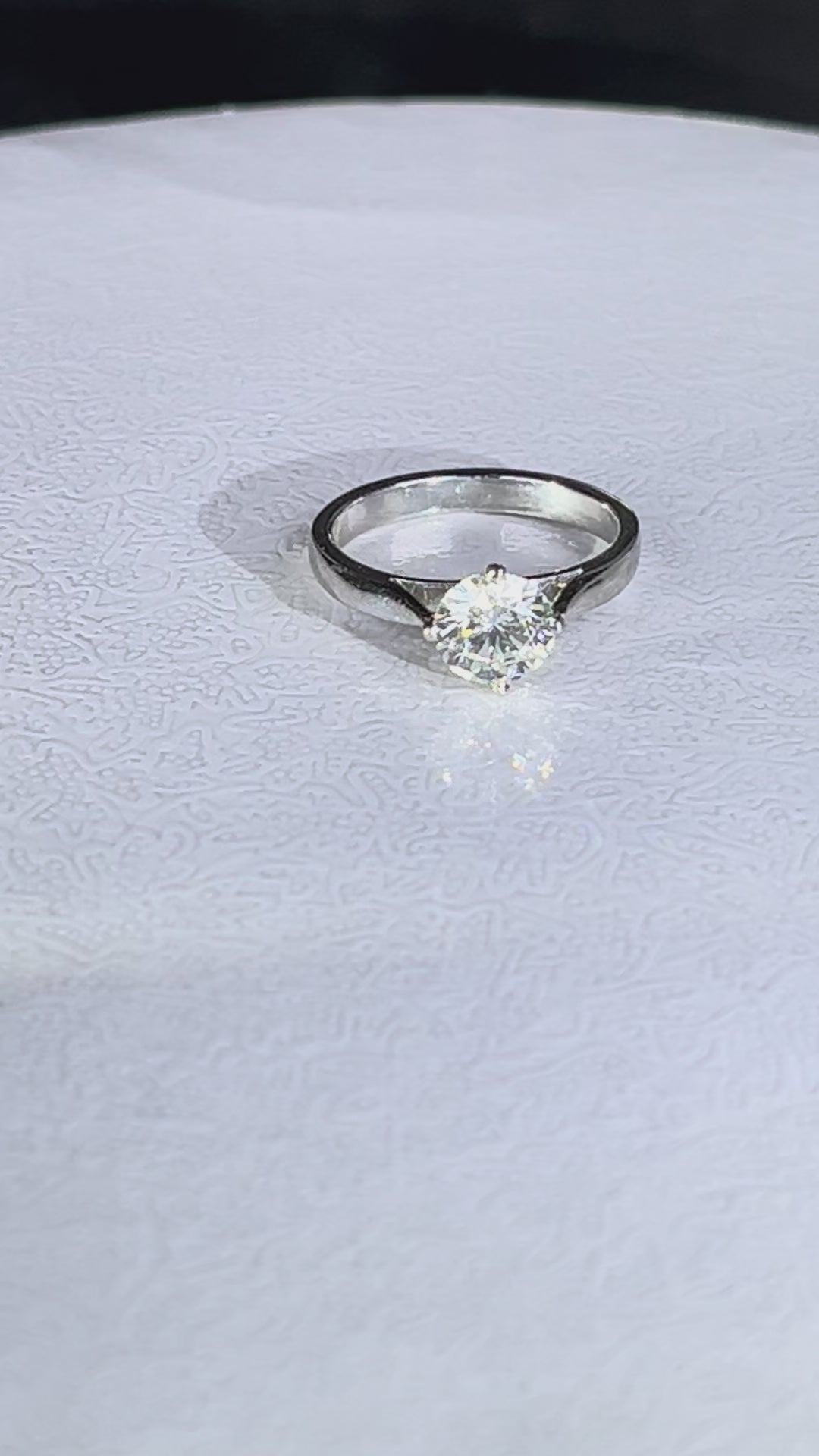 The centre stone measures approximately 6.5 mm (estimated at 1.00 carat) with an excellent F–G colour and VS2 clarity. It is securely held in a classic four-claw setting, with a head depth of 5.6 mm. The ring weighs 4 grams.