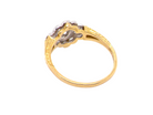 Diamonds set in platinum. Head 14.5x10.5mm, depth 3.2mm, weight 3.4grams. 18 carat yellow gold shank and under setting. Hallmarks for Birmingham 1997.