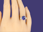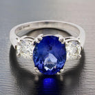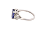 A fine three stone ring containing a tanzanite centre stone (AAAA quality) 9.5x7.3mm (2.6 carats).