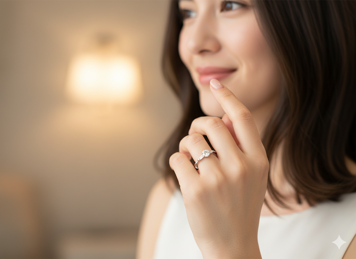 At its heart lies a brilliant-cut white diamond, measuring 5mm (approximately 0.50 carat), of H–I colour and VS clarity — a beautifully balanced stone with exceptional sparkle and fire.