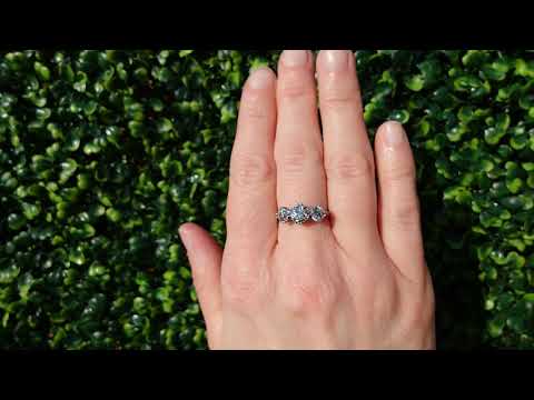 Traditionally, the three stones in a three stone ring tell the story of a couple’s past, present, and future together. The ring’s centre stone, usually the largest in the trio, symbolises the couple’s present, while the ring’s side stones represent their past and future.
