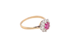 An early 20th century cluster ring containing a pink red ruby, 5mm (half a carat) a pleasing colour and very good clarity.