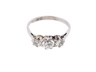 A vintage 1930s era trilogy ring. Centre diamond 5mm (0.50 carats) and each side a 3.8mm diamond (0.20 carats) total estimated at 0.90 carats.