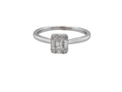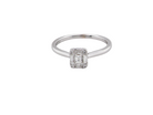 A very pretty modern cluster ring set with various cuts of bright white diamonds. Combined to give a luxurious sparkling effect, the central diamond, emerald cut 3.5x3mm.