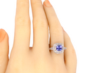 An 18 carat white gold cluster ring containing a tanzanite centre stone 6.3x6.23mm (one carat) with VVS clarity and AAAA colour surrounded by two circlets of brilliant cut white diamonds. Tanzanite has an Anchor Cert Certificate.