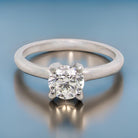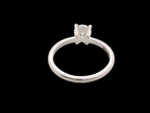 A truly stunning single stone ring sporting a brilliant cut white diamond that is retained by four solid claws.