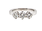 A traditional trilogy ring containing brilliant cut white diamonds, centre 5mm and to each side a 3.4mm stone- total estimated at 0.85 carats.