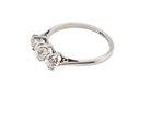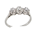 A vintage trilogy ring containing three old cut white diamonds, centre stone 4.8mm (0.50 carats) and each side a 3.6mm diamond (0.22 carats) Total estimated at 0.95 carats.